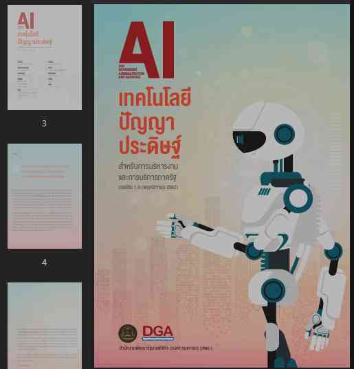 สำนักงานพัฒนารัฐบาลดิจิทัล (องค์การมหาชน). (2562). เทคโนโลยีปัญญาประดิษฐ์สำหรับการบริหารงานและการบริการภาครัฐ. กรุงเทพฯ: สพร.
